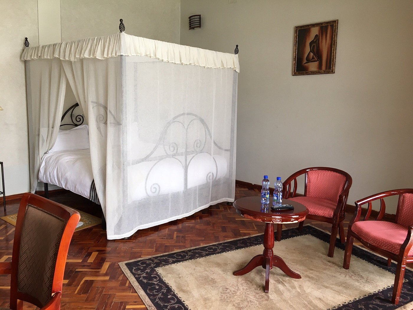 The hotel is built on the cliffs of gorgeous Lake Bishoftu with direct access to the lake. It has twenty eight luxurious rooms and four family studios, a conference hall that can accommodate approximately 150 people, a gymnasium, a sauna and steam bath and a beauty parlor. Prices for rooms vary from $71 for standard room to $110 for Executive room. Prices are subject to 10% service charge and 15% VAT. Breakfast, access to the SPA and Wi-Fi are included in the price. Special prices are available for group bookings, conferences and special events. Contact us to find out what is suitable for you. Asham Africa has the largest collection of African Art at its Berhane Gallery. Entrance is free for Hotel Residents. Our rooms are named after an African country and are decorated with artifacts from that country. We plan to develop a full African menu for our guests.